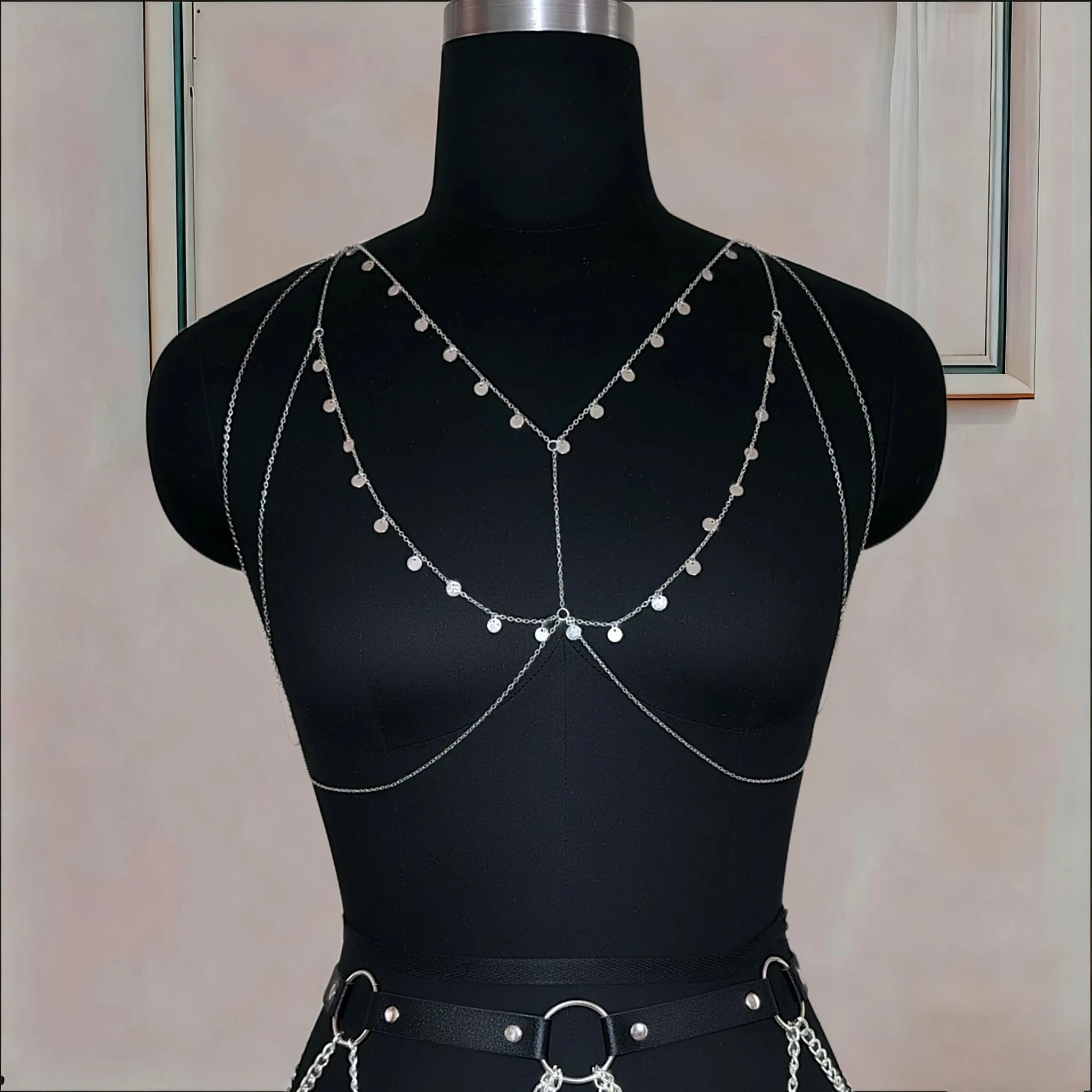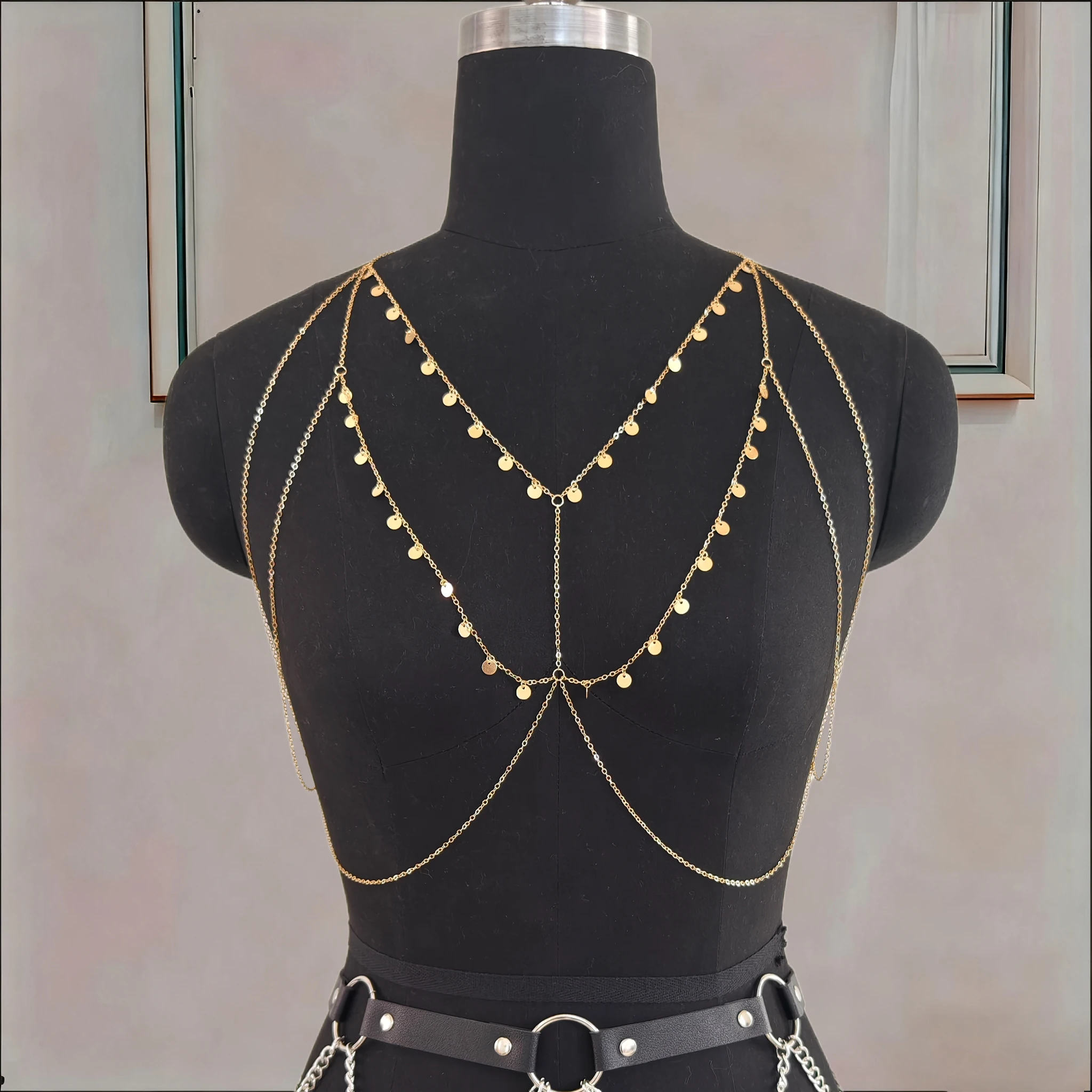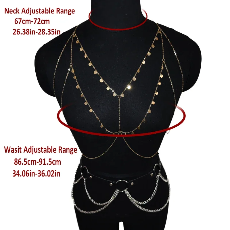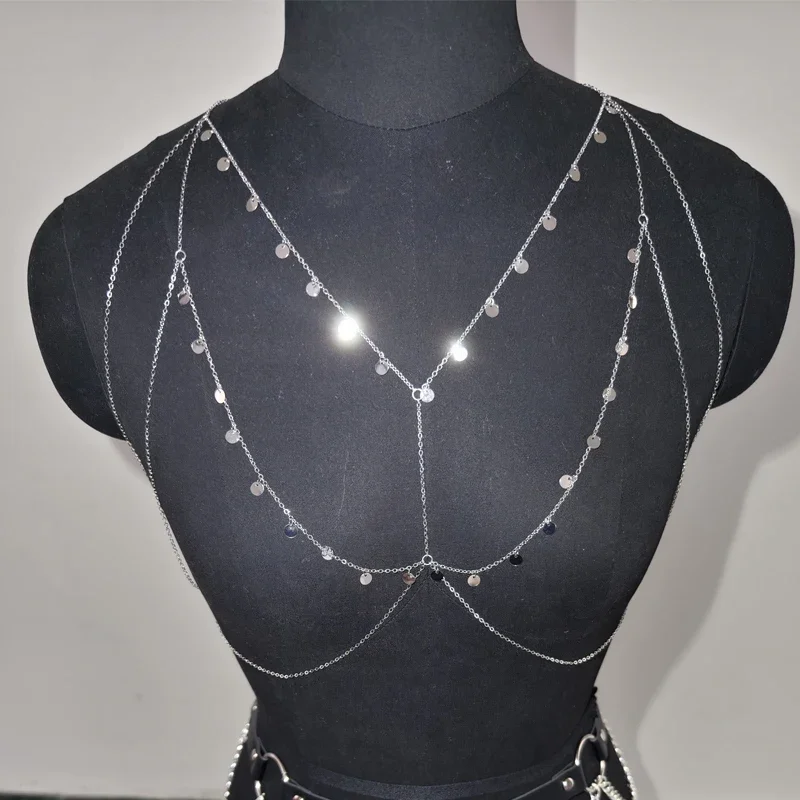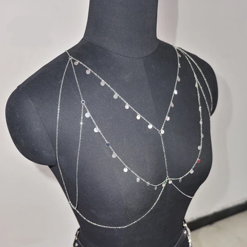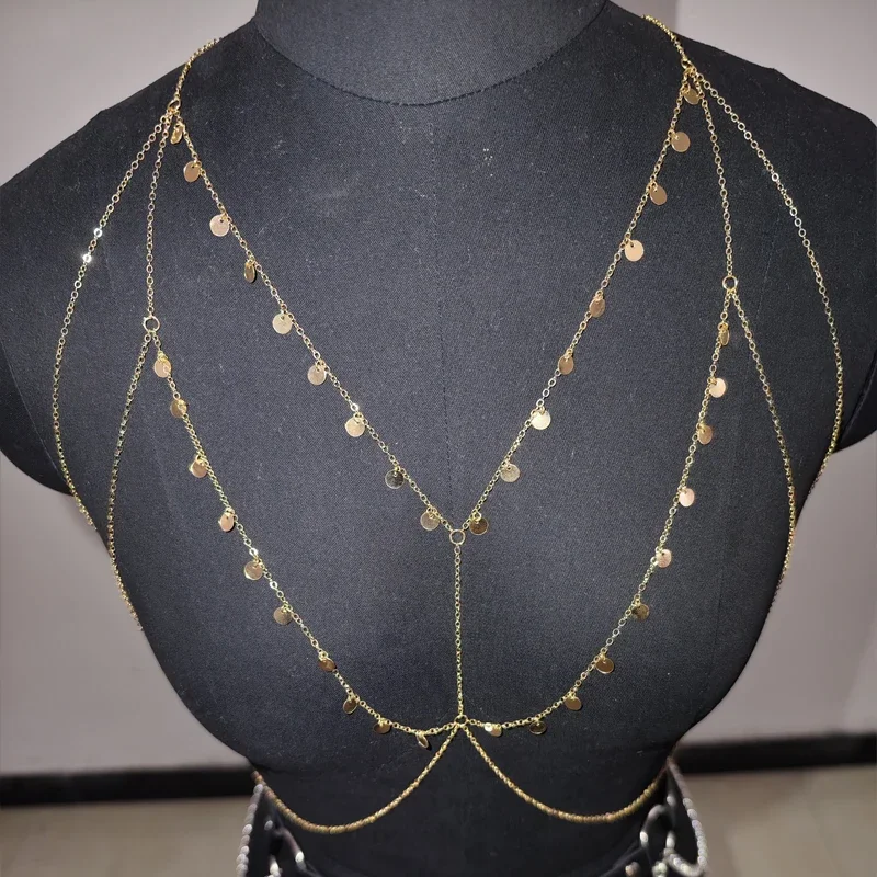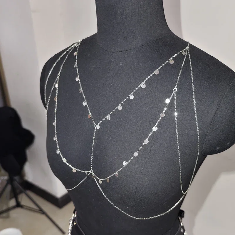 Ladies’ Metal Small Round Sequined Body Chain, Dazzling and Eye-catching, Made of Alloy Material, Perfect Accessory
