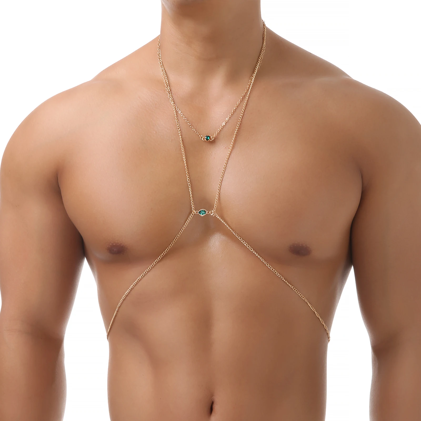 Metal Cross Chain Chest Body Chains Men Punk Silvery Color Necklace Man Collar Green Jewelry Harness Party Accessories